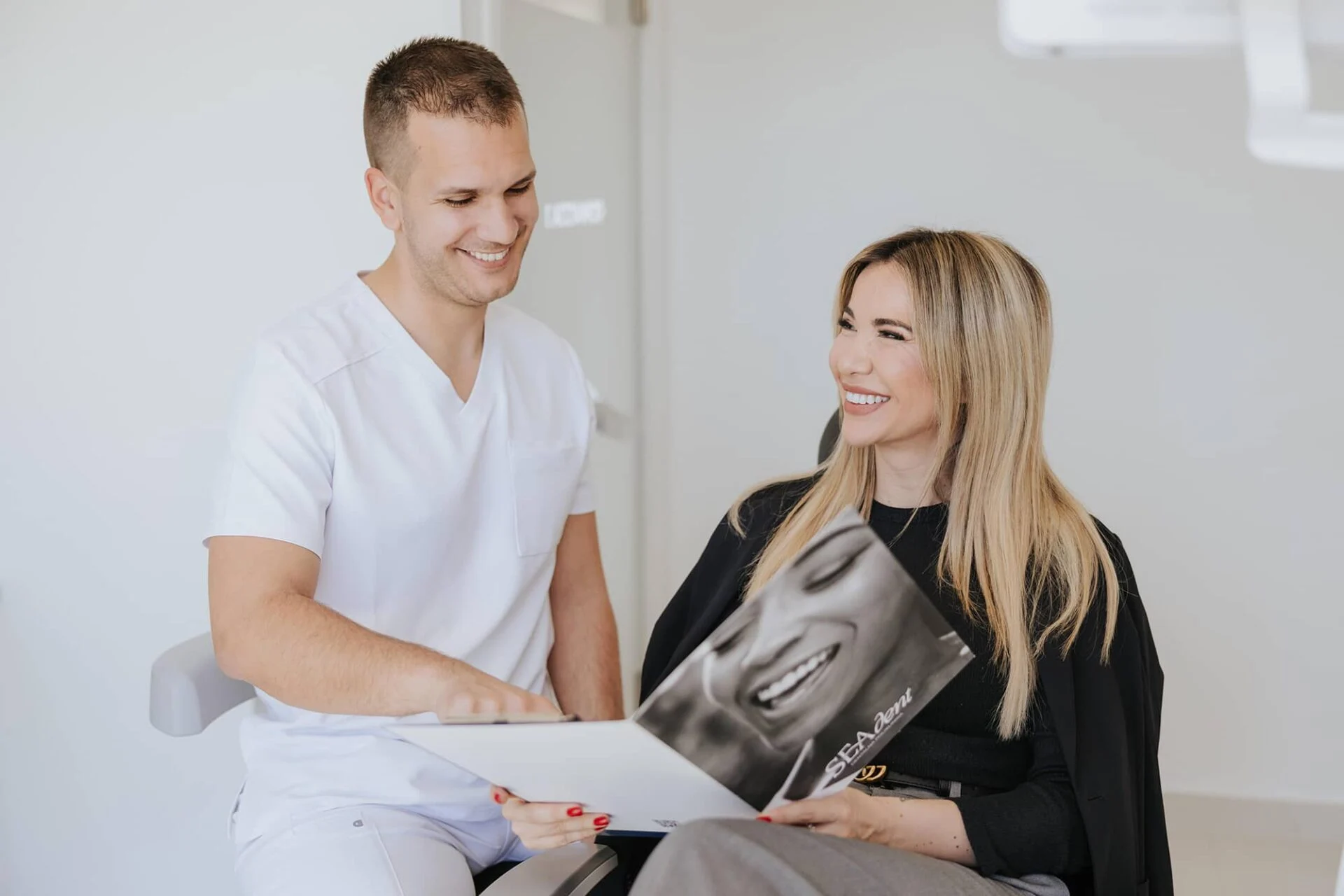 U Poliklinici SeaDent kod protetskih radova koristimo mock-up model Vašeg budućeg osmijeha. Mock-up se izrađuje na temelju Vašeg otiska zubi i dostupan je u fizičkom obliku. Izrađujemo ga od materijala sličnog boji zuba i postavljamo ga na Vaše zube privremeno kako biste mogli doživjeti i isprobati Vaš novi osmijeh. Mock-up je vrijedan alat koji Vam omogućuje da aktivno sudjelujete u kreiranju vlastitog osmijeha i postignete željeni funkcionalni i estetski rezultat.